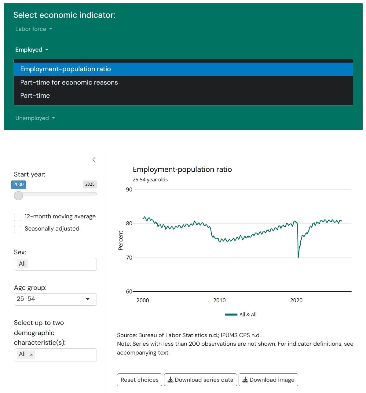 At the top of the page, users first select one labor market indicator: