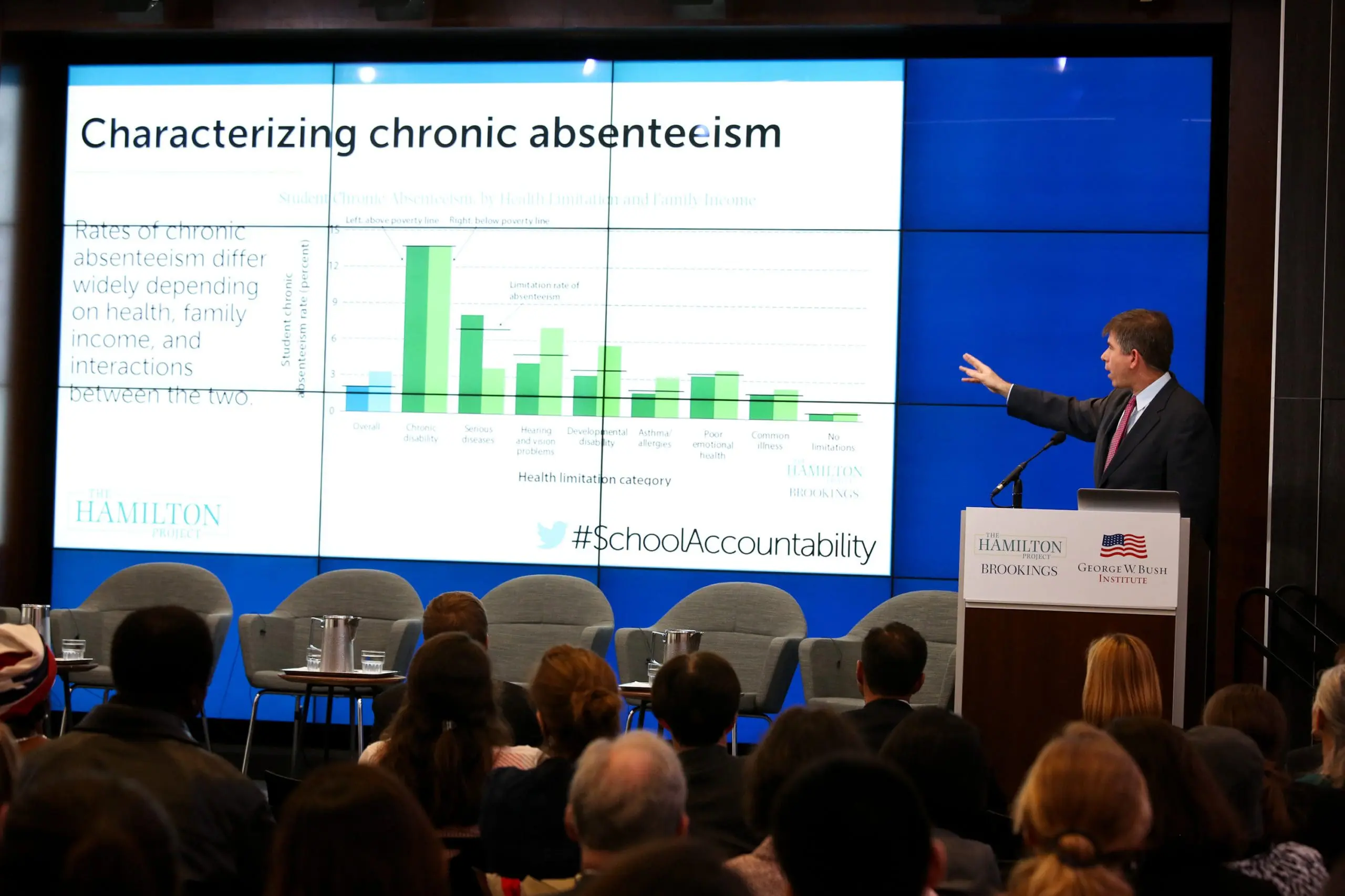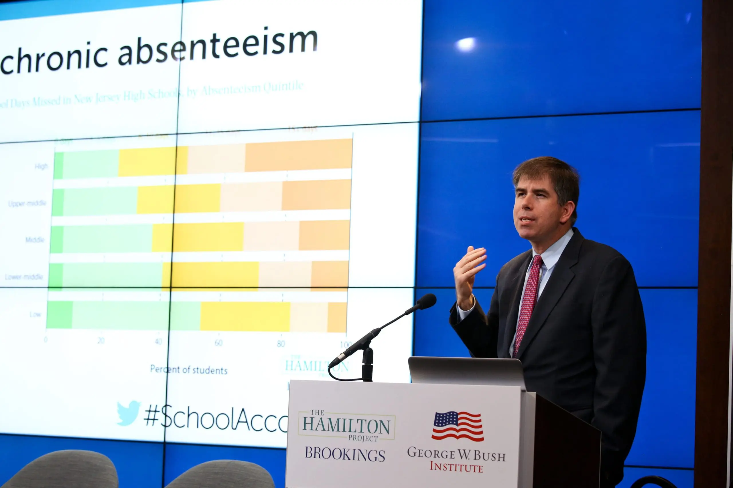 The event coincided with the release of a new Hamilton Project strategy paper on ESSA implementation, offering states an actionable framework for reducing rates of chronic absenteeism. It also highlighted the George W. Bush Institute’s recent work in accountability including The A Word series, and two new spotlight sections of the State of Our Cities tool, which offers comparable education data profiles of major U.S. cities. The new spotlights on chronic absenteeism and college and career readiness synthesize research and data and provide strategies for city leaders to confront new challenges related to school accountability.