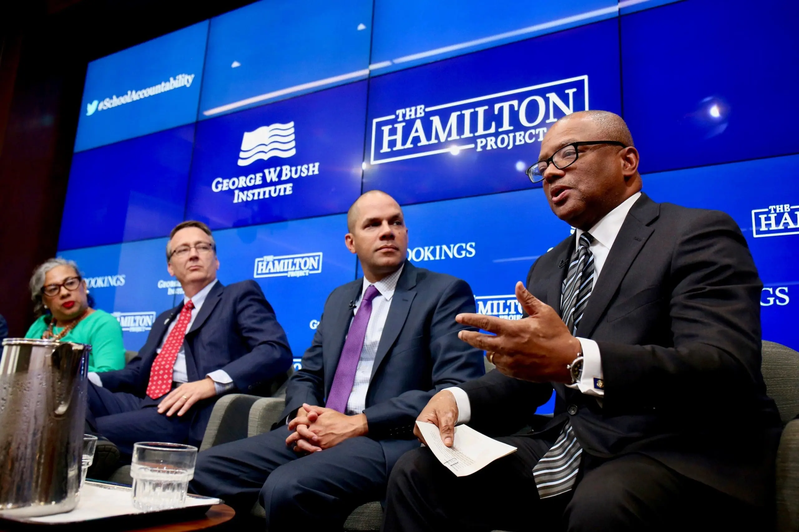 On April 25, The Hamilton Project at the Brookings Institution and the George W. Bush Institute co-hosted a forum to explore whether broadening the scope of school accountability under the Every Student Succeeds Act would spur states and schools toward improving school quality and student achievement. The forum featured framing remarks by Jason Botel, Principal Deputy Assistant Secretary, Delegated Duties of the Assistant Secretary of Elementary and Secondary Education, U.S. Department of Education, and a roundtable discussion with: Scott Brabrand, superintendent, Fairfax County Public Schools, Virginia; Ajit Gopalakrishnan, chief performance officer, State Department of Education, Connecticut; Sandra Diodonet, assistant superintendent, Paterson School District, New Jersey; Broderick Johnson, chair, My Brother’s Keeper Alliance, Obama Foundation; and Javaid E. Siddiqi, president and CEO, The Hunt Institute. Alyson Klein, assistant editor, Education Week moderated the roundtable.