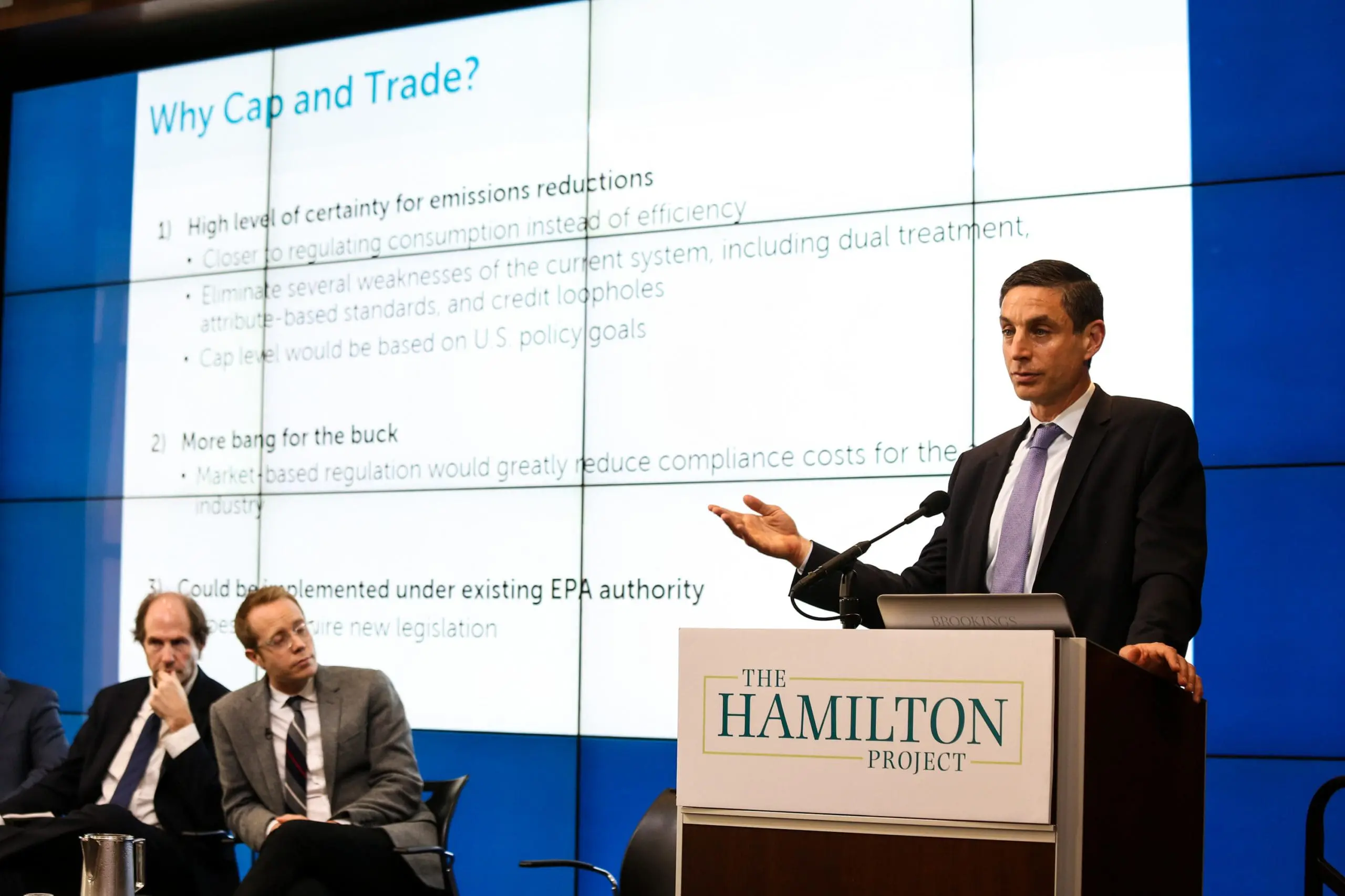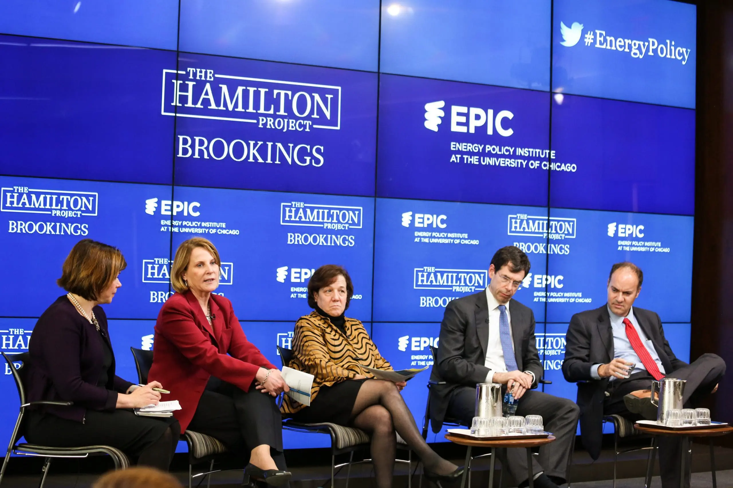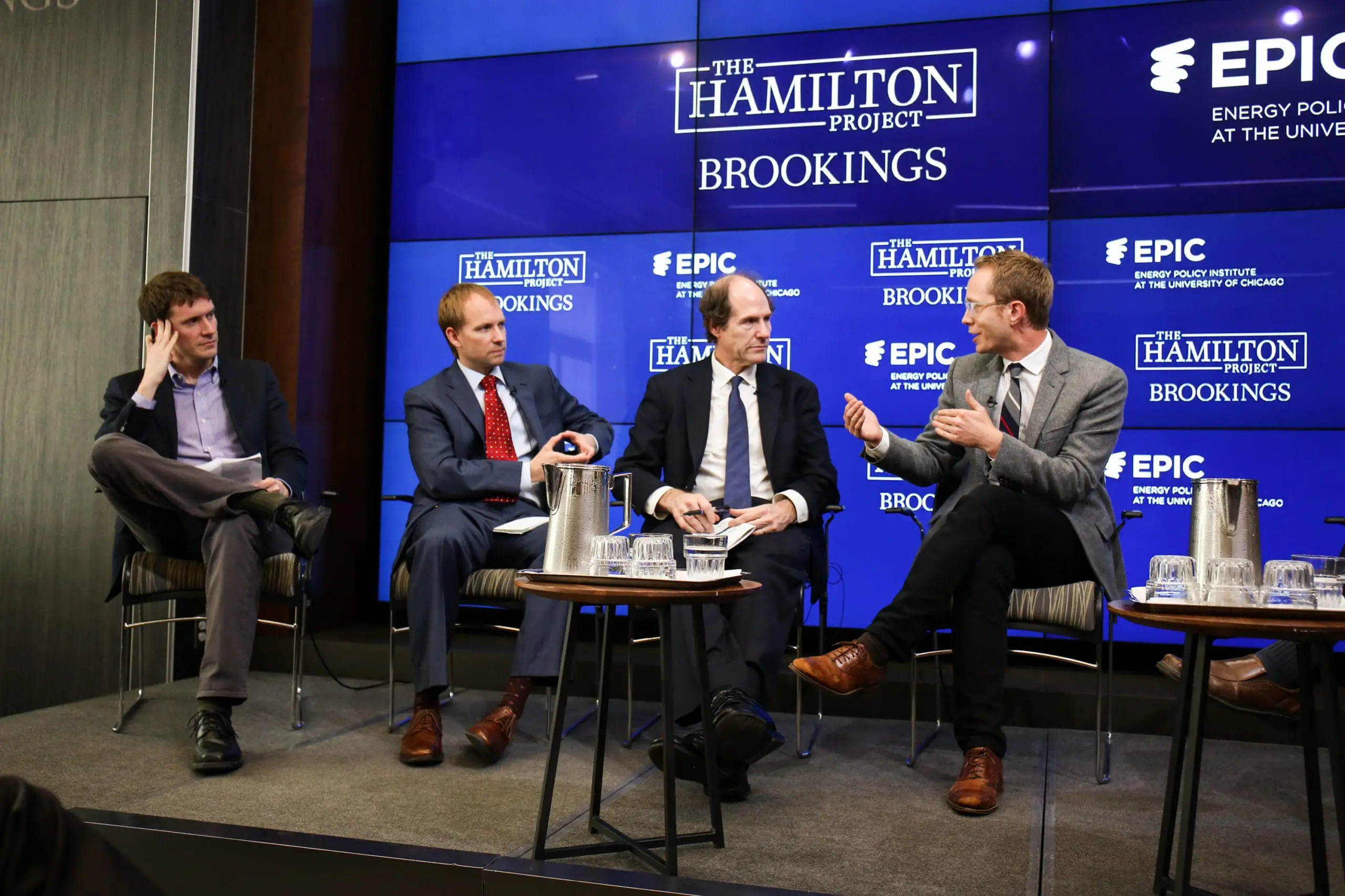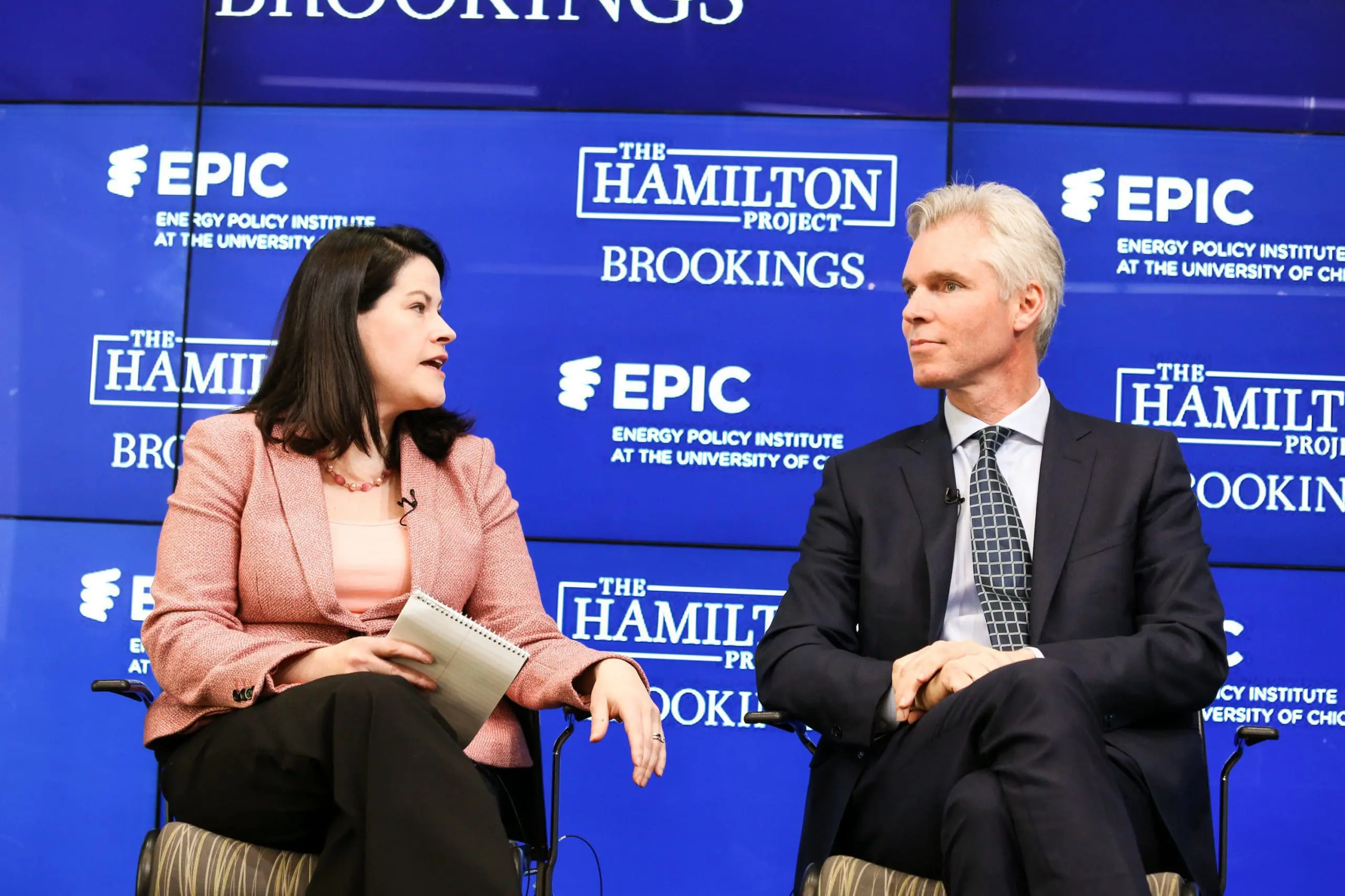 On March 27, The Hamilton Project at the Brookings Institution and the Energy Policy Institute at University of Chicago (EPIC) co-hosted a forum to explore the best approaches to address these challenges. The forum began with opening remarks by former U.S. Treasury Secretary Robert E. Rubin. A fireside chat and three roundtable discussions followed, featuring panelists including: Ted Halstead (Climate Leadership Council), Mindy Lubber (CERES), James L. Connaughton (Nautilus Data Technologies), David Schwietert (Alliance of Automobile Manufacturers), Cass Sunstein (Harvard University), John Deutch (Massachusetts Institute of Technology), Trevor Houser (Rhodium Group), Ellen D. Williams (University of Maryland), Steven H. Strongin (Goldman Sachs), Alice Hill (Hoover Institution), Brad Plumer (Vox), and Jennifer A. Dlouhy (Bloomberg News).