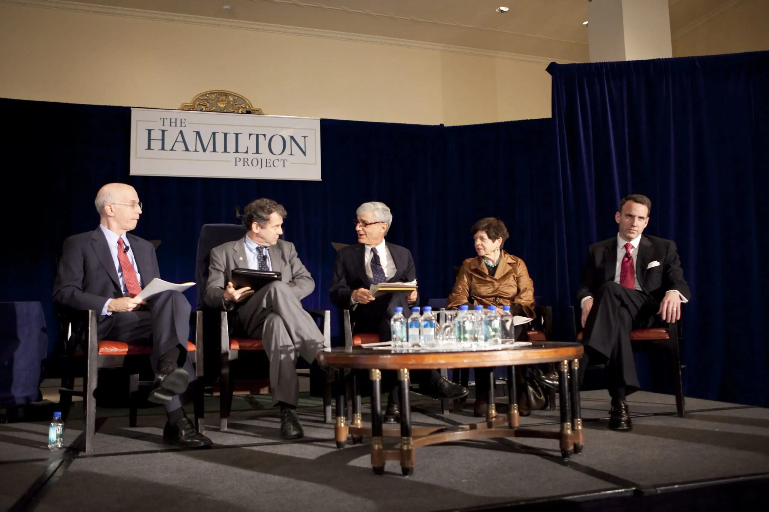 The first panel, moderated by Brookings Vice President and Economic Studies Co-Director Karen Dynan, featured presentations on a number of innovative ideas in the Hamilton tradition, including health and long term well-being, improving K-12 education, and reforming energy and climate policy. Rubin moderated the second panel on challenges and opportunities facing the U.S. economy, featuring Senator Brown and former Federal Reserve Vice Chairs Alan Blinder and Alice Rivlin, a Brookings Senior Fellow.