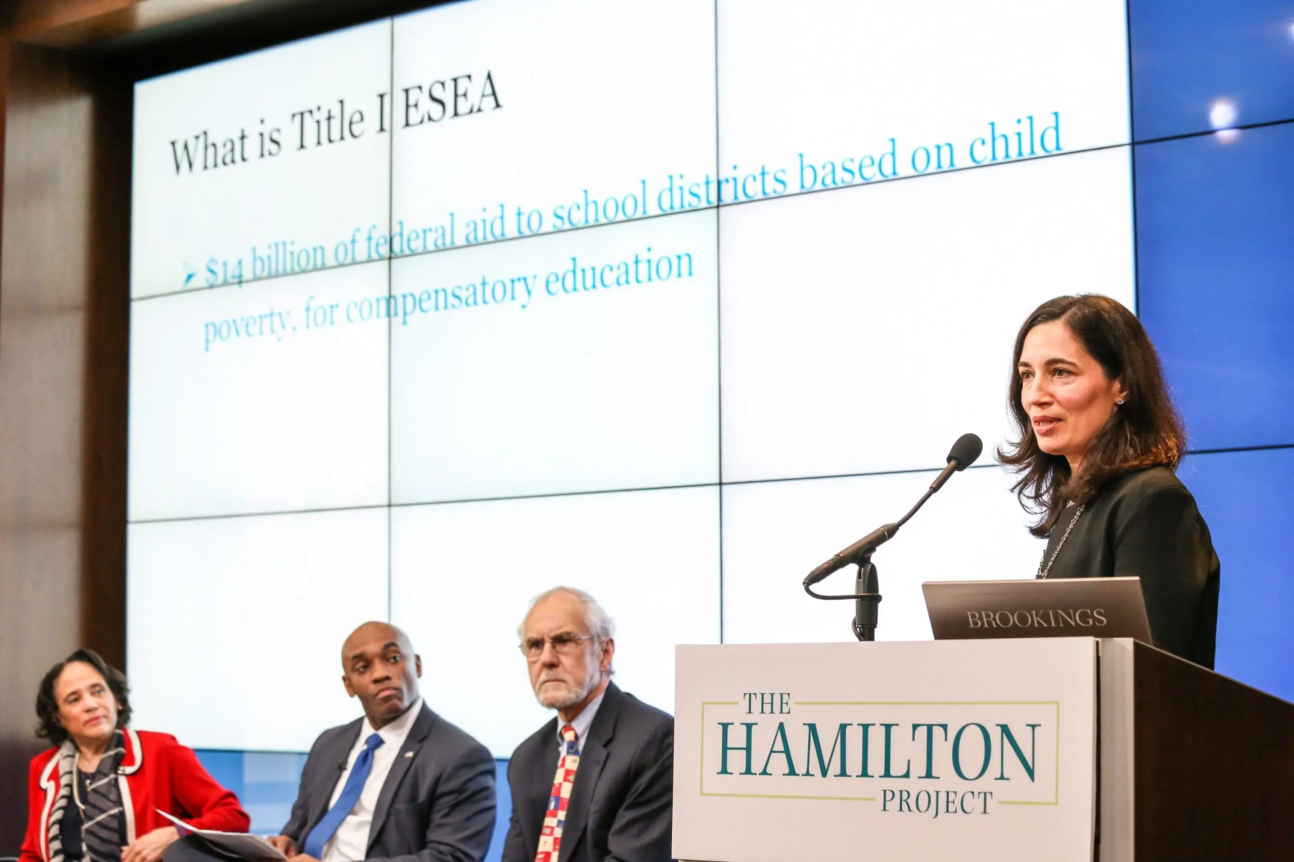 During the forum, two roundtable discussions highlighted the following forthcoming Hamilton Project proposals: “Improving High School Outcomes for Poor Adolescents: Scaling up the Match/SAGA Tutorials” by Roseanna Ander (University of Chicago), Jonathan Guryan (Northwestern University), and Jens Ludwig (University of Chicago); “Increasing Targeting, Flexibility, and Transparency in Title I of the Elementary and Secondary Education Act (ESEA) to Help Disadvantaged Students” by Nora E. Gordon (Georgetown University); and “Learning What Works in K-12 Education, with a Case Study of EDUSTAR” by Aaron K. Chatterji (Duke University) and Benjamin F. Jones (Northwestern University).
