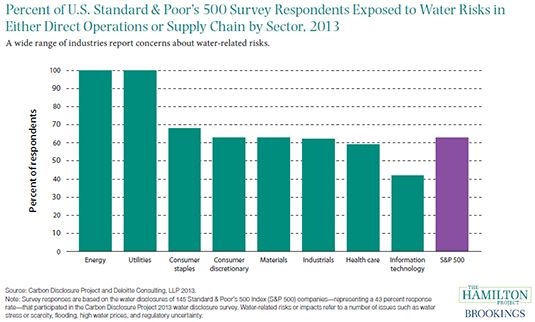 Figure 6. Percent of U.S. Standard & Poor's 500 Survey Respondents Exposed to Water Risks in Either Direct Operations or Supply Chain by Sector, 2013