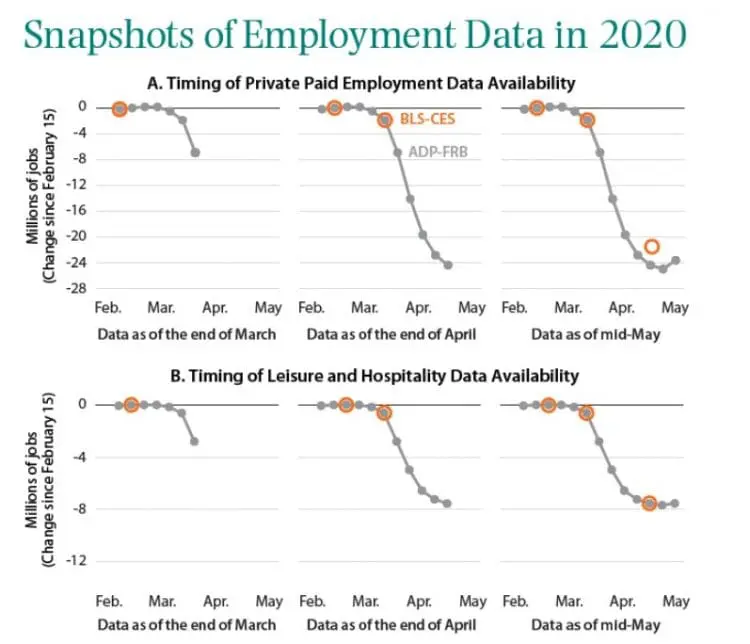 The authors examine the use and value of nontraditional data sources, such as private payroll service providers and restaurant reservation services. They identify three main benefits of such data. First, these data are often available much earlier than the data provided from government surveys, an important feature at times like March 2020, when the economy was changing direction abruptly. Second, these data are often more granular—covering particular geographies or demographic groups, for instance—and that can allow for faster evaluations of the cost of shocks or the benefits of policies, which, in turn, can help fine-tune policies. And, third, nontraditional sources can provide information unique to a particular crisis. But the cost to the government of nontraditional, privately gathered data can be substantial. Historical time series are not always available, which can make interpreting the data challenging. Privately gathered data are not always representative or gathered with the same methodological rigor as government economic indicators. Still, the benefits of nontraditional data are greater than the costs.