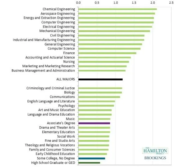 First, a college degree—in any major—is important for advancing one’s earnings potential.